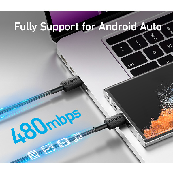 כבל 1.8 מטר USB-C to USB-C מבית Anker. תוחלת חיים של יותר מ- 12,000 כיפופים. עמידות אולטימטיבית בפני שחיקה ונזקים.