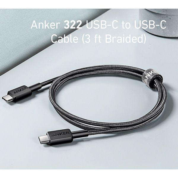 כבל 1.8 מטר Anker 322 USB-C to USB-C בצבע שחור